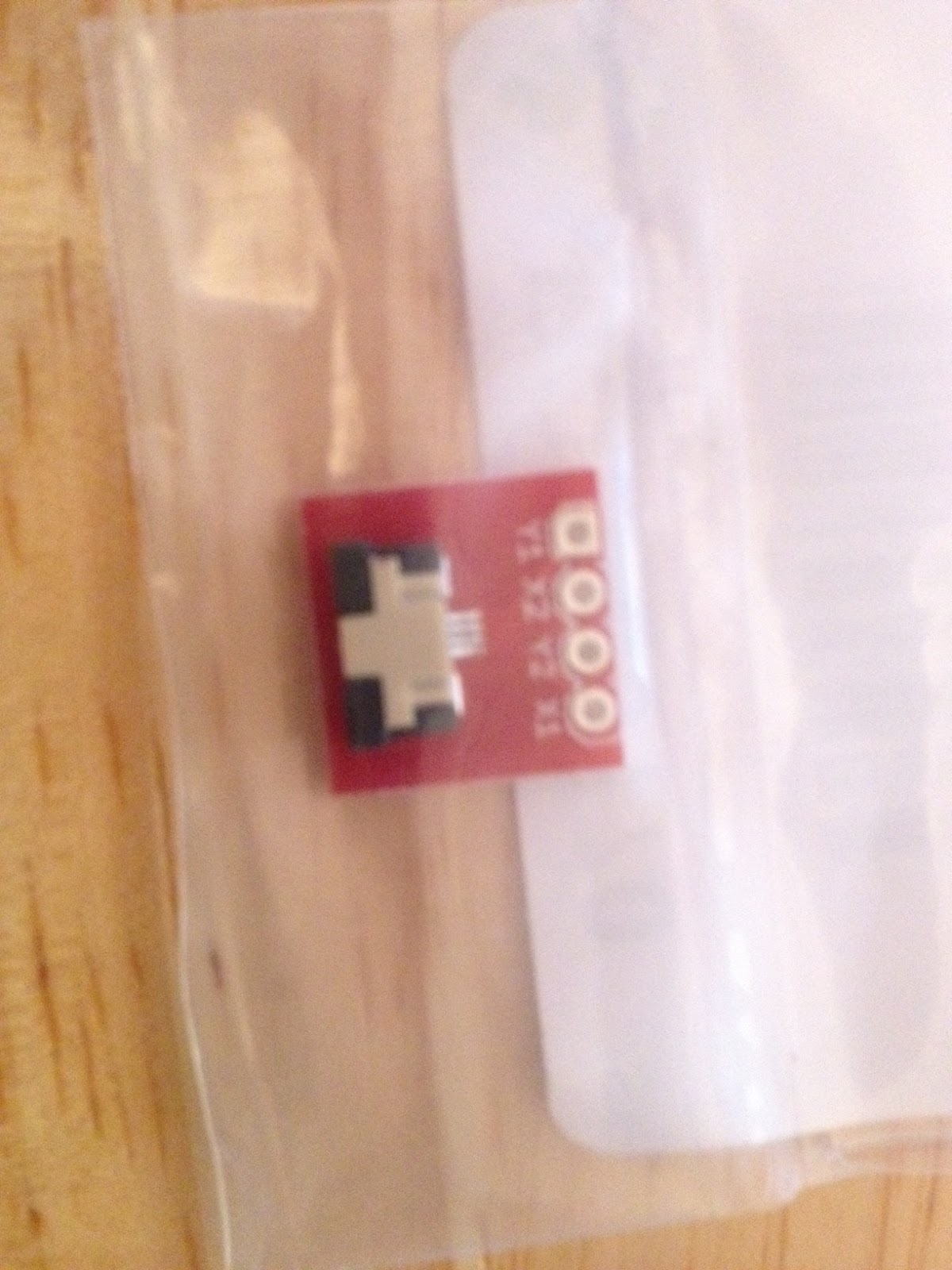 The first thing I did was put the leads into the breakout board. The leads don’t stay without some paper or something behind them… make sure you put the tape on the correct side.