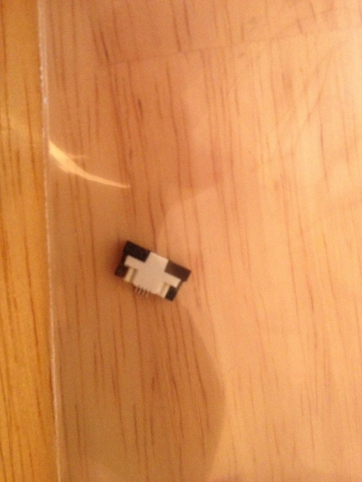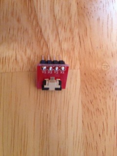 These next pictures are of the breakout board… in the top photos you can see the top and side view of the breakout board with the black slider forward to lock in place. In the bottom two photos (again top and side) you can see the slider open. I used tweezers to slide the black piece open (unlocked) so I could slide the nintendo DS cable into it with a folded over sheet of paper behind it. I also put two strips of scotch tape on the back to make the leads thicker. Then I put them in the slot and slid the black piece forward locking the leads in place.