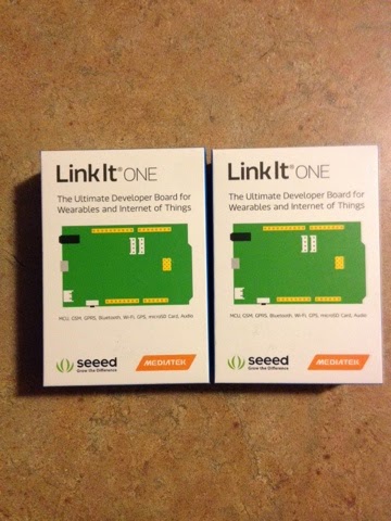 The LinkIt One (ordered from http://www.seeedstudio.com/depot/LinkIt-ONE-p-2017.html) comes with wifi, bluetooth (including BLE), SD card, gps, gsm (which we’re not going to use), and the pinouts are the same as an Arduino UNO or Arduino Mega.