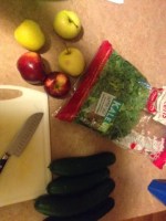 I am not starting juicing until tomorrow (I want to have one more burger and one more piece of pizza first). My wife is starting today – however, most of the recipes we’ve chosen are for two… so this is Garden Variety – it mostly tastes like Kale and Cucumber… but still pretty good. The first one of the day was mostly carrot and apple which was delicious. The recipe makes so much that we have to put it into a pitcher to mix then we pour it into cups.