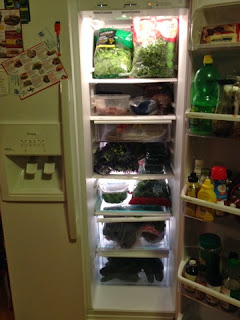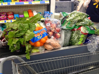 Last night my wife and I figured out what juices we would drink from the simple plan (red, orange, green, purple, yellow) and then what ingredients we’d need. I then went to Wal-Mart (the first time I’ve been in a Wal-Mart for more than a year) and loaded up my cart with enough veggies to last most of the week. I say most because we’re not sure how much we really needed (how many celery stalks are in a bunch?) so I estimated about 75%. We’ll keep track of what we use and what we have to get extra which will then determine how much we use over the next 7 days. After that we’ll have a much better idea of how much produce will be needed. While checking out I put beets up (which were wet). The checkout lady, in a German-like accent, said “thank you for choosing me for all of your wet stuff”. I chuckled, she was adorable. I couldn’t tell if she was joking or not, but I thought it was hilarious.