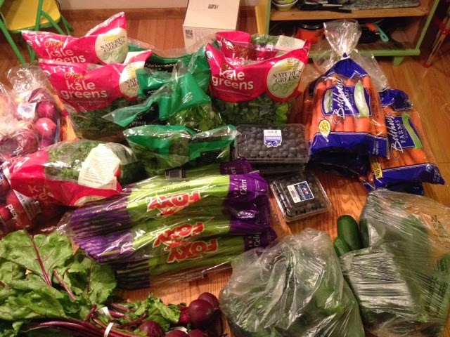 Last night my wife and I figured out what juices we would drink from the simple plan (red, orange, green, purple, yellow) and then what ingredients we’d need. I then went to Wal-Mart (the first time I’ve been in a Wal-Mart for more than a year) and loaded up my cart with enough veggies to last most of the week. I say most because we’re not sure how much we really needed (how many celery stalks are in a bunch?) so I estimated about 75%. We’ll keep track of what we use and what we have to get extra which will then determine how much we use over the next 7 days. After that we’ll have a much better idea of how much produce will be needed. While checking out I put beets up (which were wet). The checkout lady, in a German-like accent, said “thank you for choosing me for all of your wet stuff”. I chuckled, she was adorable. I couldn’t tell if she was joking or not, but I thought it was hilarious.