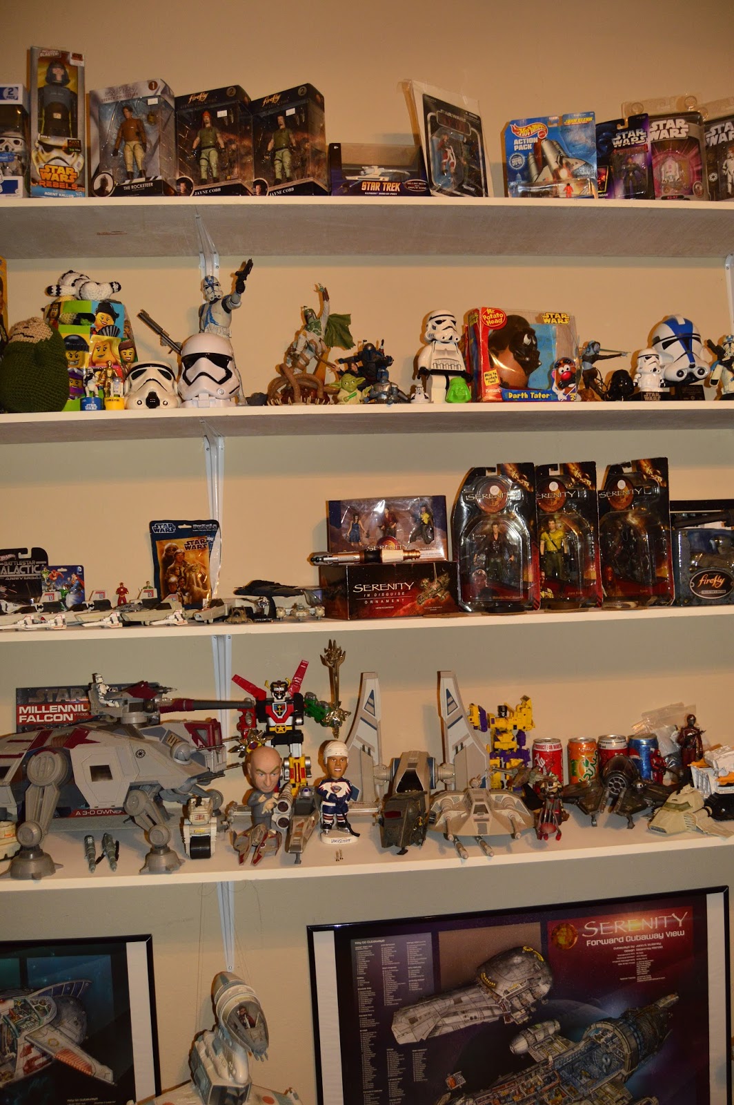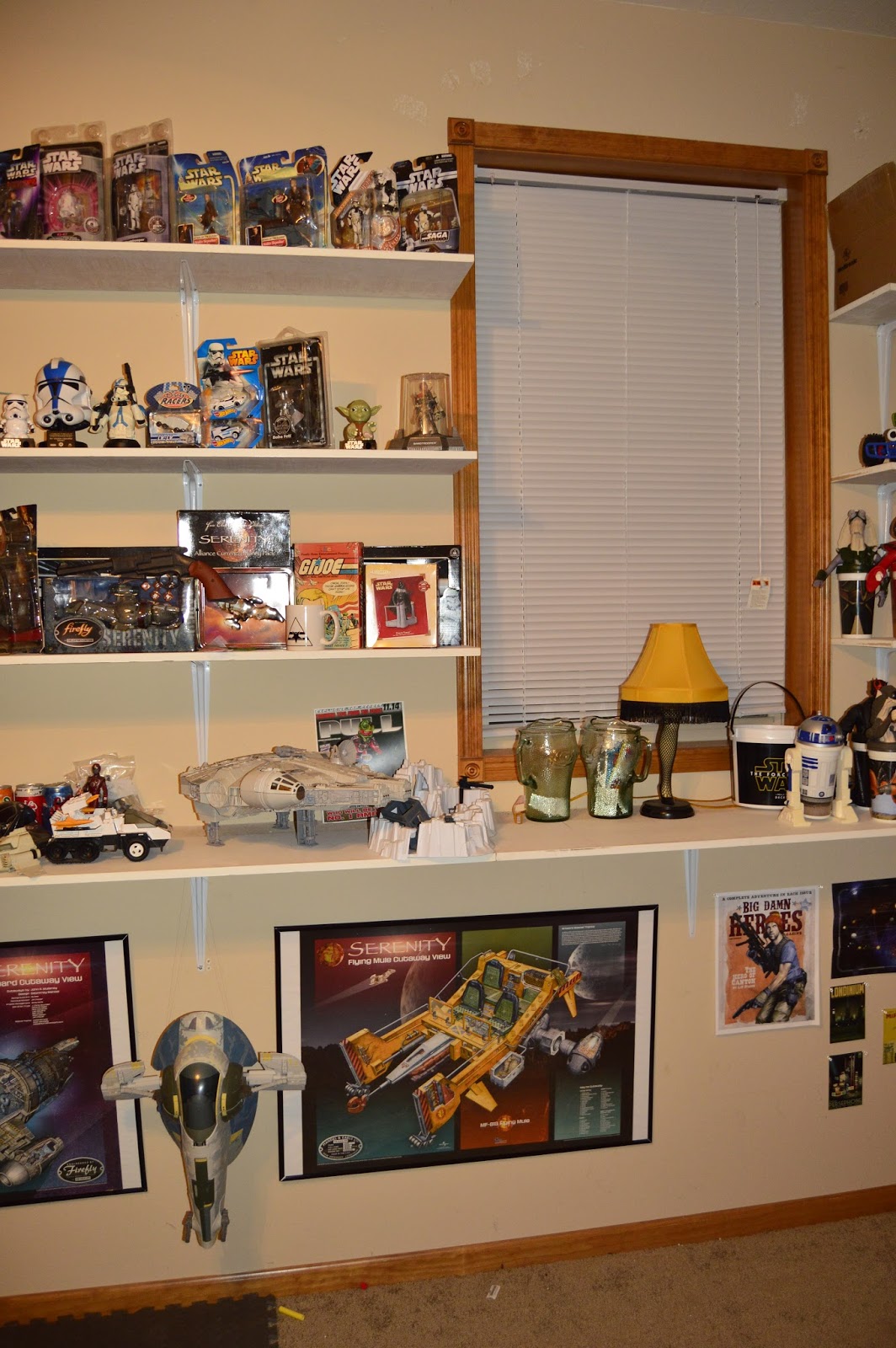 The eventual look of this room will be the Serenity Kitchen you can see some photos of it in this https://www.flickr.com/photos/lee_stringer/sets/72157623219903652/page1 – I’ll have to figure out how to arrange the displays after I figure out how I’m going to do the room. I’ve thought about putting the shelves up and then having massive drop banners made that look like the interior of the kitchen and then adding a way to roll them up to show the collection… I think that’s a bit much, but anything is on the table right now.