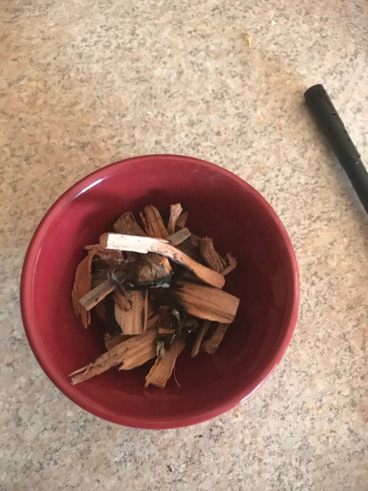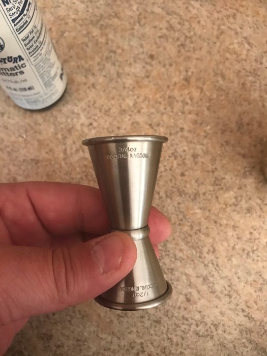 Notes: I use a torch because a regular flame doesn’t want to light the chips as well. I don’t put ice into the shaker to mix up. I mix it the way it is and then pour it over the ice cube. You can put ice into the shaker and mix it up if you want. I’ve also put ice in the shaker and mixed it up then put the shaker in the freezer for a few moments while I smoke the glass. The way I do it now seems to be a little more efficient and either way doesn’t diminish the flavor.