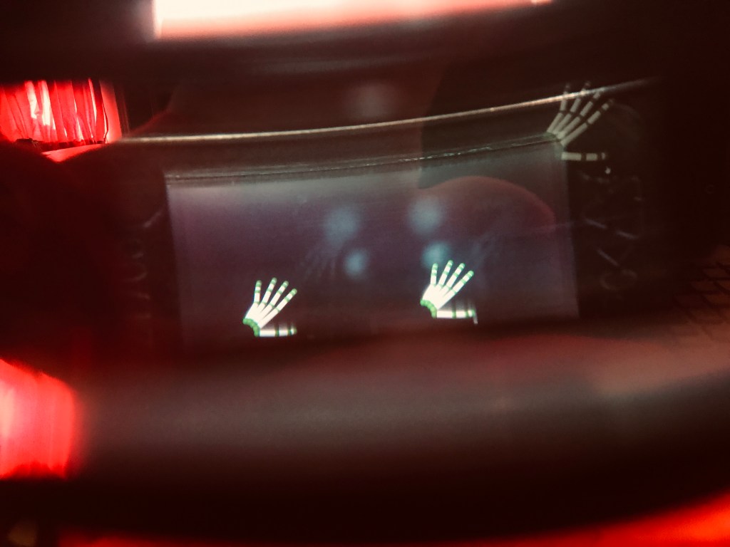 Now, here’s what I was right about. I was able to run my SERINDA code on my machine and everything worked. I was able to pull up both cameras on my laptop (the built-in one, and the one on the glasses). I didn’t get the IR to work. I’ll have to do some digging to see if I can figure out why the IR camera didn’t come on and the IR light wasn’t on. I am having issues with my LeapMotion and my code so I couldn’t test some of the items that I wanted to.