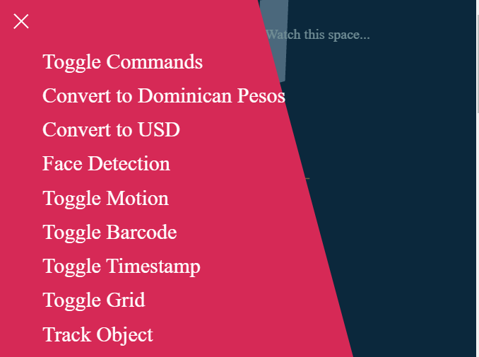 In the HUD/GUI you would see something like the hamburger menu then you tap on it with your hand and the menu you want to see displays and you can select an item from it. This could even be done with a Hiro or Aruco marker on a flat device. Luckily, there are two libraries that help with this. One is the Leap-widgets project. The other is the Leap Controls project.